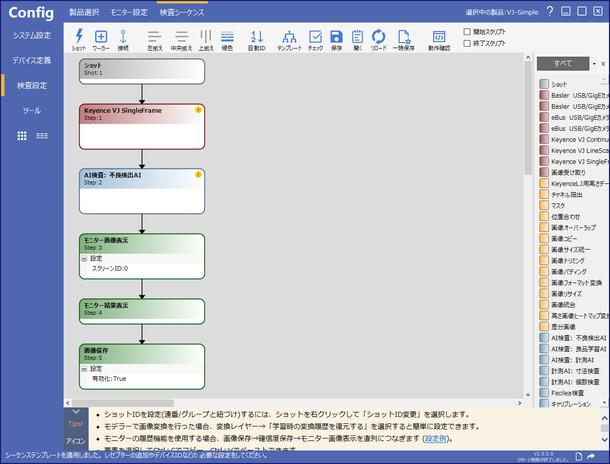 実現したい検査シーケンスを選択して必要最低限の設定を追加するだけで、 すぐに運用を開始できます。